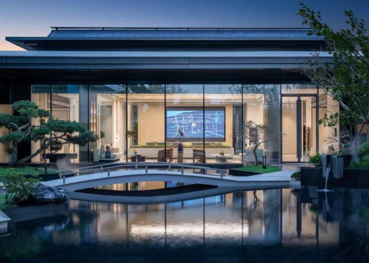 建筑设计:建筑沿袭绿城 “庐系”“现代形、东方意” 的理念,采用铝板线条与大面积落地玻璃窗,汲取 Superflat 超扁平建筑理念,南向窗墙比最高可达 90%,获得了 2023 年全球建筑设计大奖住宅类的银奖。