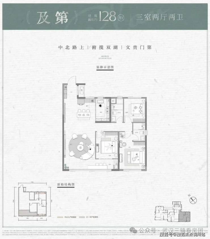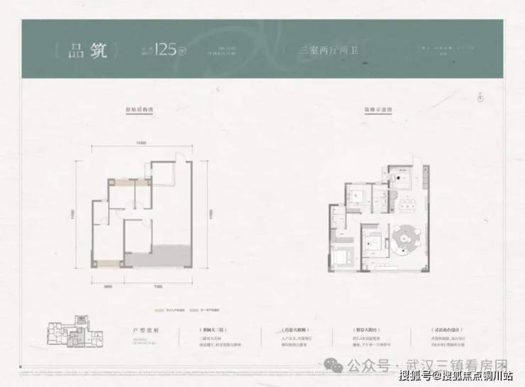 户型面积:建面约125-172㎡三房四房产品