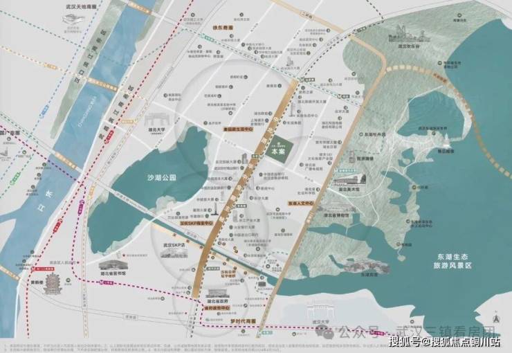 距离东湖约800米,距离沙湖约700米。东湖,比肩黄鹤楼、长江大桥,三大城市名片之一。沙湖,武汉唯一内环湖,传统富人区。双湖之心,推窗俯揽,推门融入!