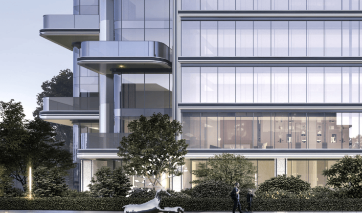 项目外立面整体大开大合,全落地玻璃幕墙设计,十分通透,搭配铝板和铝板一体板,横向线条带来了延伸感,既有现代的简约大气,又有东方的柔美。