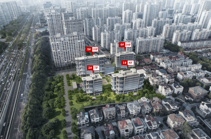其中1号楼为8F,2号楼为7F、3号和4号楼均为10F(3号楼底层局部配套+架空、4号楼底层配套+架空)。