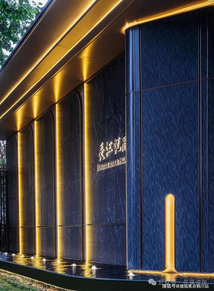话不多说,来看实景,先看项目大门,长约65米超级界面门庭,高约5.5米奢华大挑檐,加上大面积叠水景观的营造,做得很用心,一眼气派!据悉项目参考河西中宁府大门升级,原大门墙面和部分围墙都拆除重建,可见诚意!