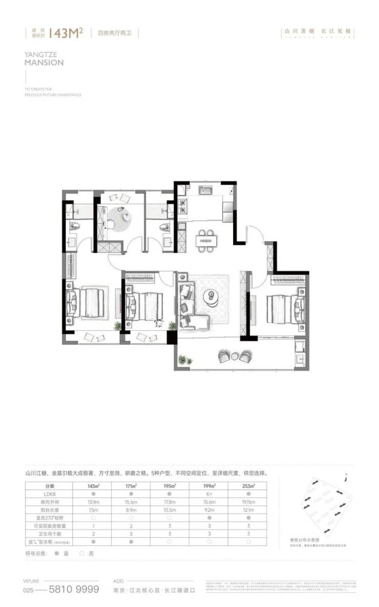 山川江樾一共打造了3个样板间,分别是:建面约143㎡四房两厅两卫、建面约171㎡四房两厅三卫,以及建面约253㎡四房两厅三卫。三款产品,三种体验!