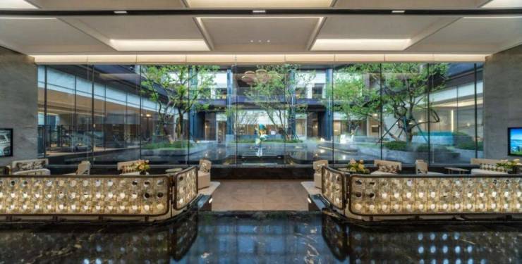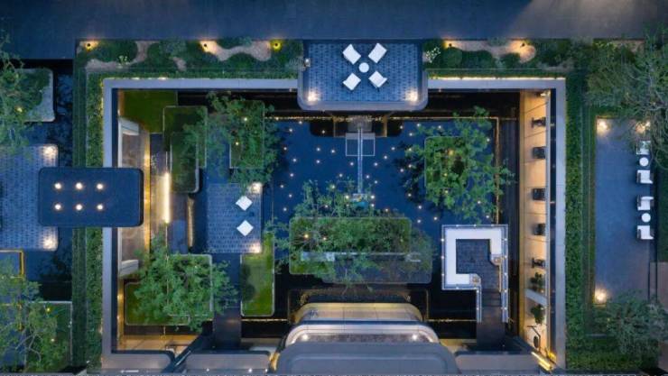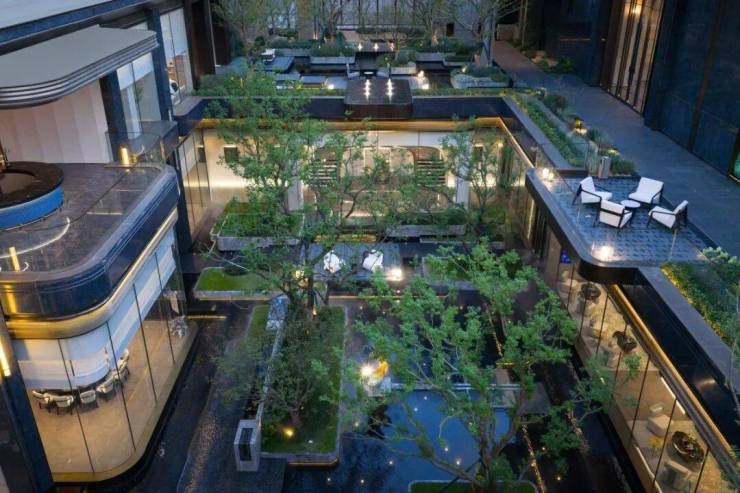外部的殿堂级的苍穹顶只是开胃前菜,大菜是进入会所的第一眼,能看到整个下沉式庭院。