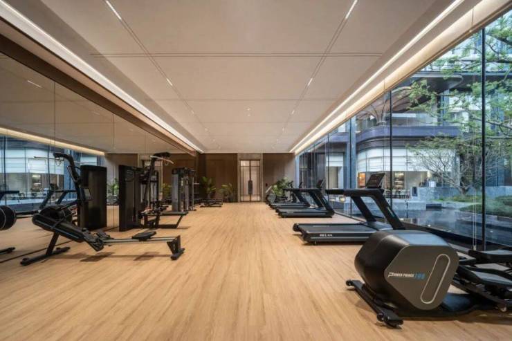 如,面积达150平,采用专注室内高端健身器材品牌英吉多的健身房,与武汉当红健身品牌设置了联名私教课程,绝对专业。