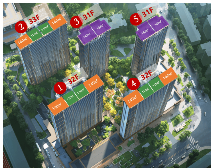 作为四代住宅,其户型面积段为109—167平产品,共计499户。
