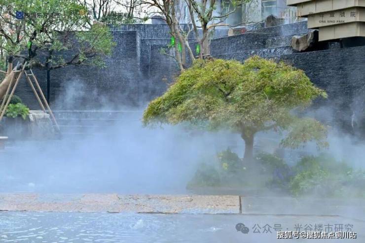 山水前庭的飞瀑撞碎在镜面水景中,雨雾缭绕,构成 “未见其宅,先闻其声” 的苏式留白。