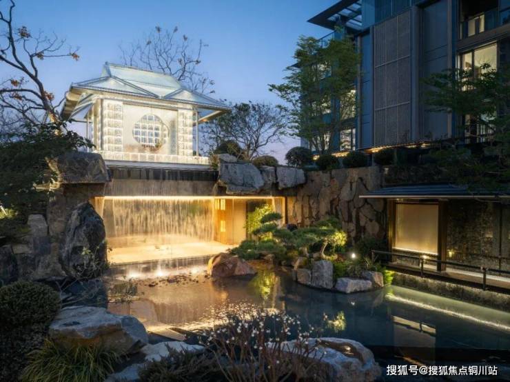 在项目已经实景呈现的宋韵美学示范区,你可以看到一系列超配输出:约60米阔尺门仪、近8米挑高大堂、“丹青绝色”的铝板外立面,还有庭院会所内,约4米高仰山飞瀑,对望艺术八角琉璃亭...将高端低密改善的排面拉满。