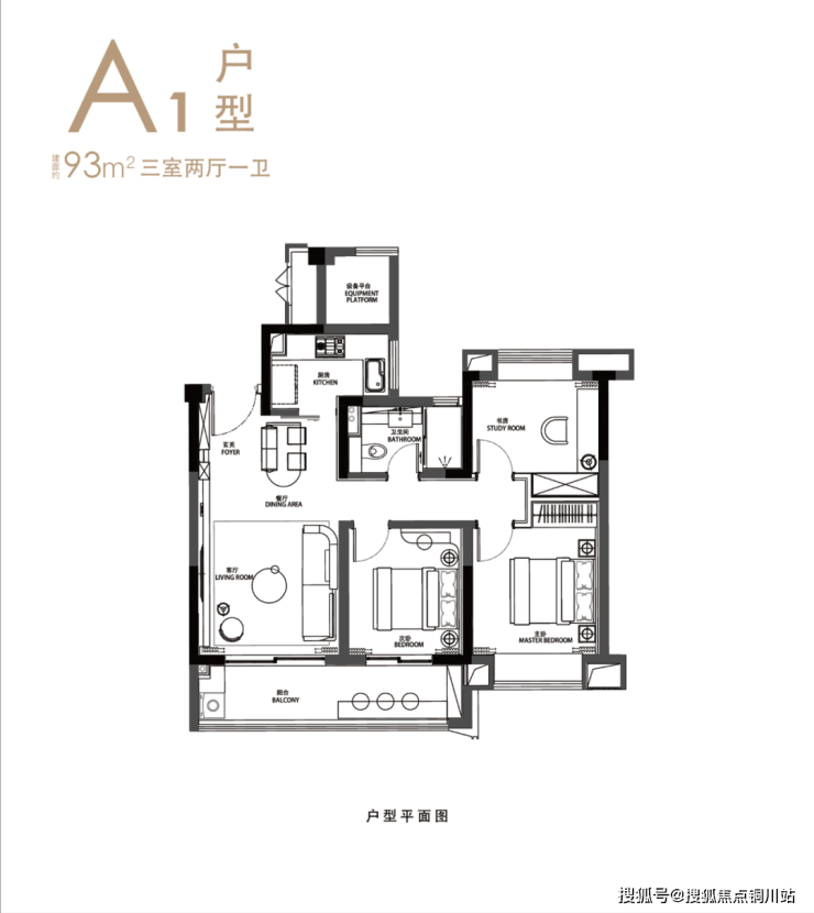 其中,约93平王牌户型,三房两厅一卫设计,是市面上同等面积段产品面宽最宽的户型,三开间朝南+双阳台,室内空间利用率充足。