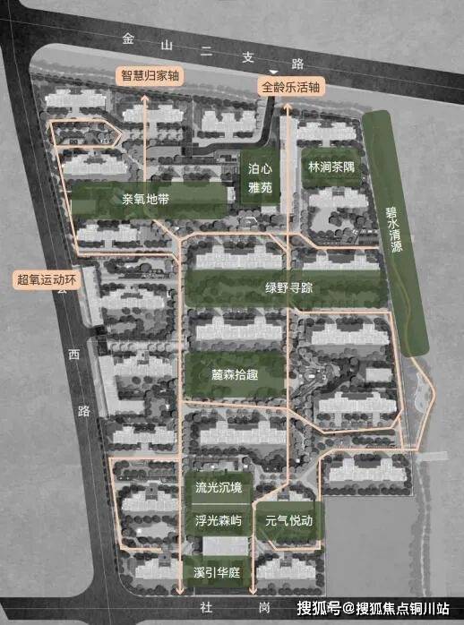 超氧运动环、智慧归家轴、全龄乐活轴整体串联小区门庭、中央会客厅、森氧漫步道、宅间花园、名人广场以及滨河景观带等核心功能区,形成十大主题景观,未来住在小区将畅享健康美好生活。