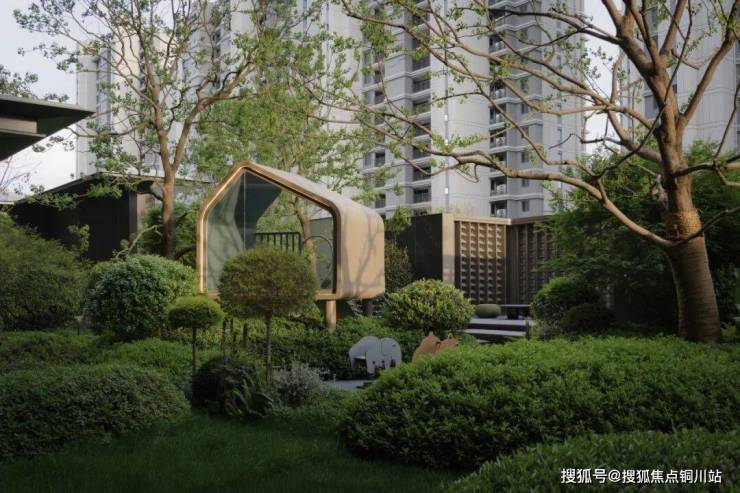 在有限的内庭院中塑造人工高差的半山半水,营造柔软的景观视线屏障,打造园境水院内盒。收放自如的空间形态,给人应对自如的自由形态,功能、绿意、水景,所有自然质感无界交融,形成一种高级的生活智慧。
