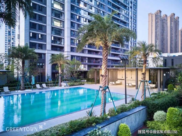 在宅间的花园区,充分考虑四季的变化,巧妙运用樱花、枇杷、紫薇等组合,形成高低错落的组团景观。片区内少见的约360㎡无边镜面泳池,天光云影、林立楼宇倒映池中,绿意蔚蓝萦绕,给人沉浸式的度假体验。