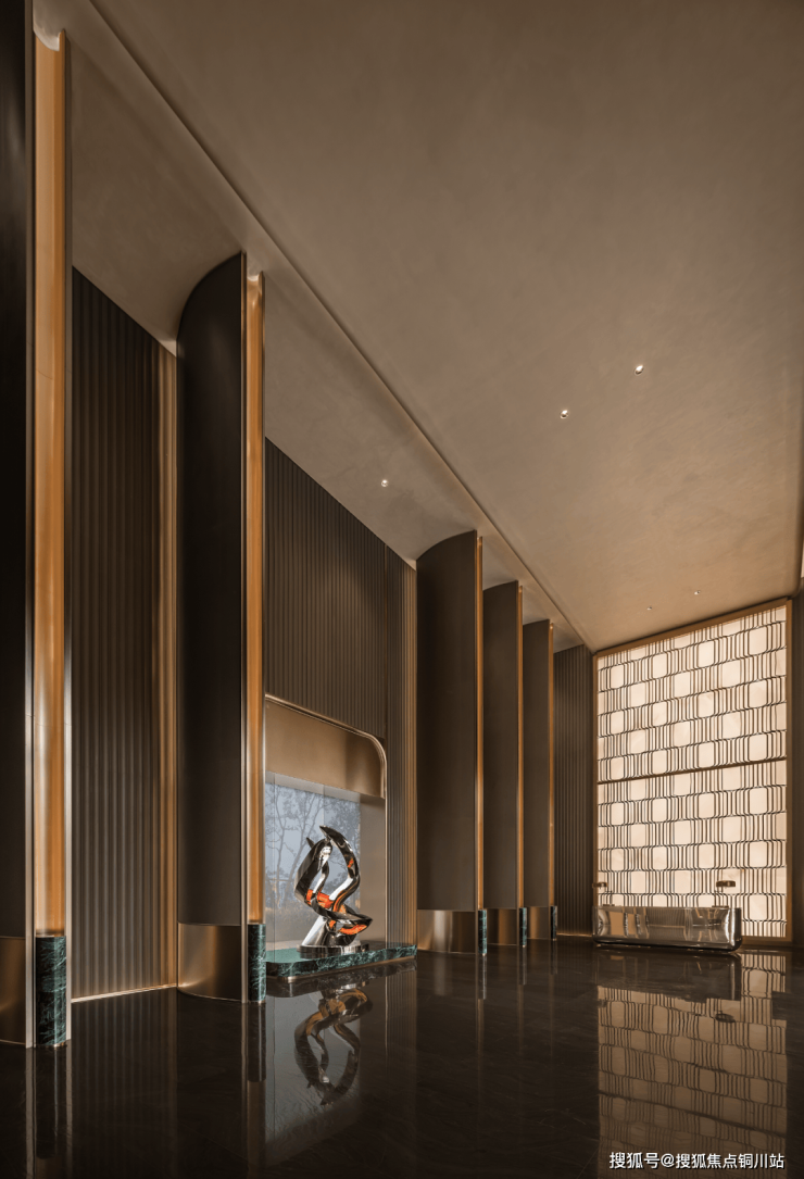融合“高端艺术画廊”理念,以艺术之美勾勒形态,以奢华之韵赋予灵魂,深入城市文化底蕴,精心打造小区大门,将空间尺度与奢华气息完美演绎。45米以上的宏伟艺术门庭,引领尊贵归家仪式,弧形铝板线条在光影交织中璀璨夺目。极致雅奢,彰显现代审美风采;光彩流转,散发着高贵气息;超然物外,尽显格物艺术魅力;无限想象,匠心独运,演绎极致奢华。