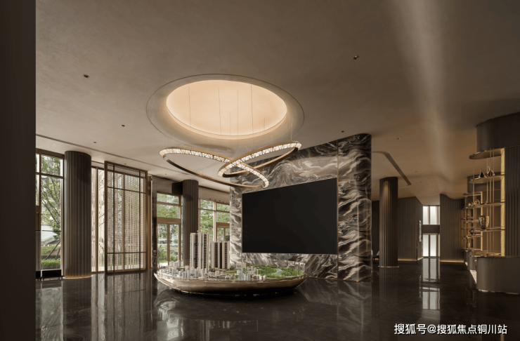 前厅挑高开阔,以经典的中轴对称设计为核心,打造酒店式会所风格的空间布局,彰显东方美学的严谨秩序与和谐之美,尽显尊贵礼仪的深层内涵。精选大理石与金属元素的巧妙搭配,犹如一场浪漫的邂逅,营造出令人陶醉、无限遐想的氛围,深刻体现了外在奢华与内在雅致的完美融合,演绎了一种至高无上的美学生活理念。