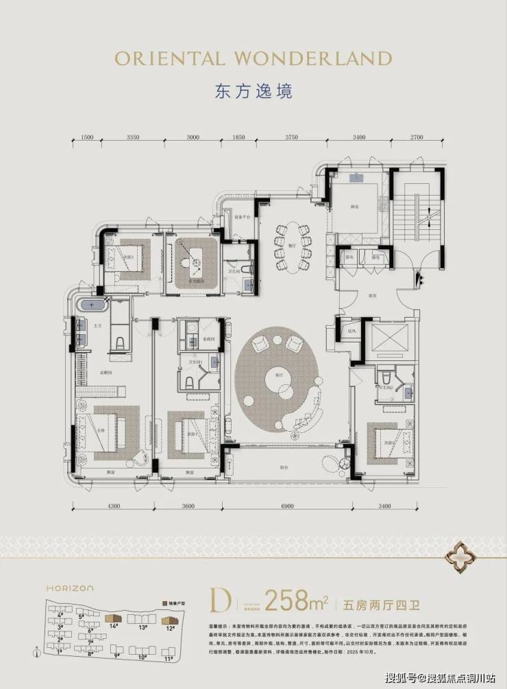 客厅、阳台尺度都非常阔绰,建面约258方户型超级客厅的面积达到近90方,中西餐厨一类的延展功能界面更优秀。