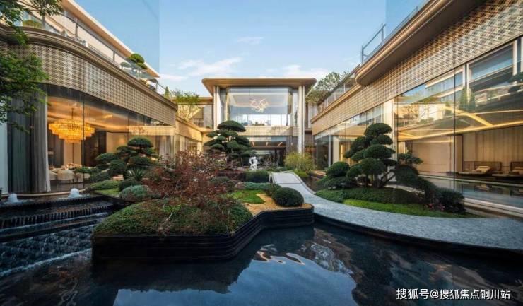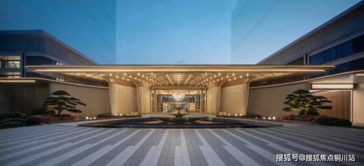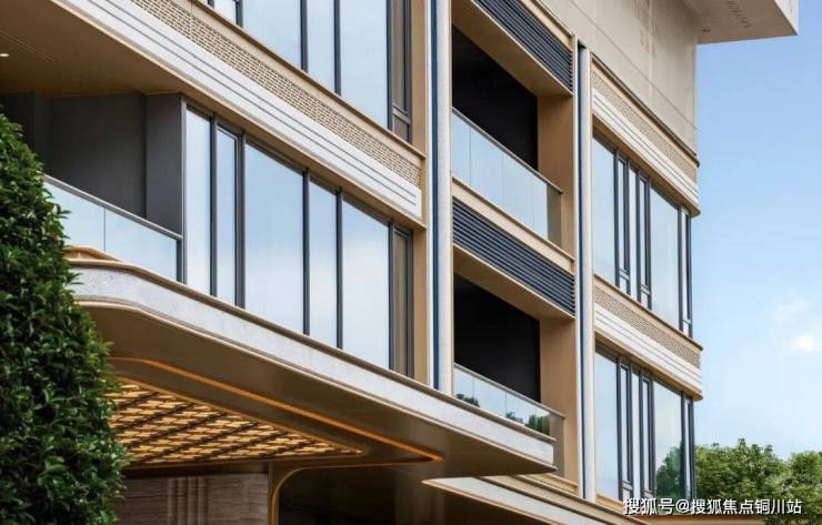 建筑立面采用香槟金铝板配合大面玻璃,细部使用美国灰麻石材,辅以精致金属线条,钢琴漆工艺波浪铝板,一看就很贵气,很有辨识度。