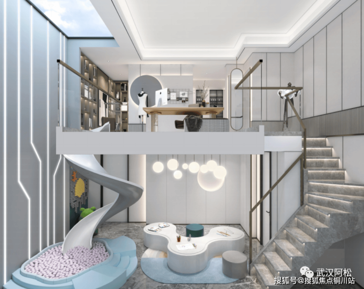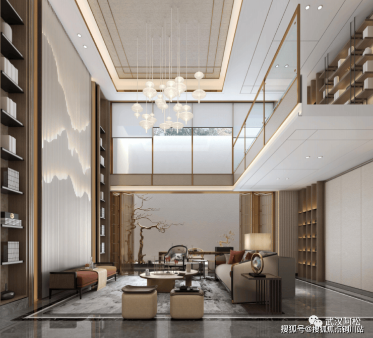 客厅挑空。所有户型客厅上空均做了约6米高的挑空,交付后业主可自行做隔断,作为拓展面积使用。二楼部分可做为超大卧室空间。