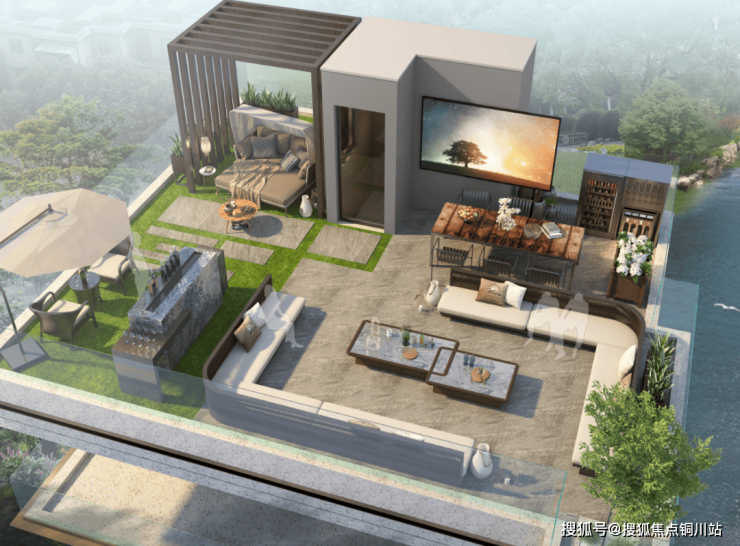 上叠有超大露台。据介绍,露台最大面积可达约50平。周末节假日,邀上三五好友来一场BBQ、配上露天电影等,简直不要太爽。最关键是,露台可一线看汤逊湖,秒杀大多数同类产品。
