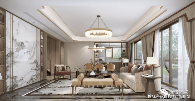 1、建面约165平的户型做了超大横厅设计,整个客餐厅有几十平的空间,方正大气,空间感十足。