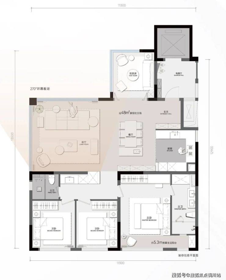 产品规划上,项目涵盖小高层116户、高层246户、非标大平层22户,主力户型为96㎡三房、119㎡四房、125㎡四房、140㎡四房。值得一提的是,所有户型均享有独立电梯厅、得房率均超100%,空间利用率十分可观。