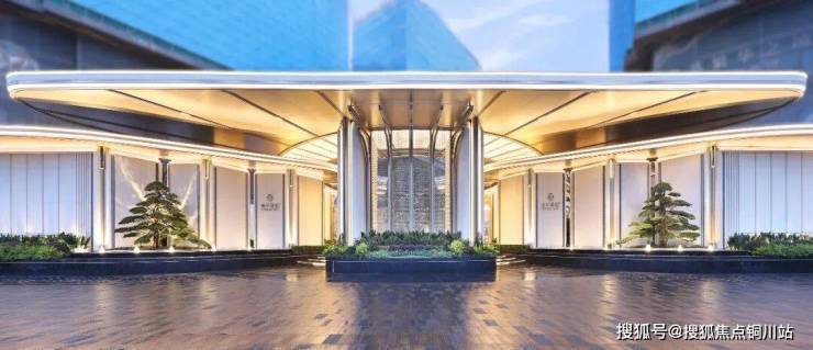 大门头跨度约60米,相当于12辆特斯拉首尾相接,超越很多五星级酒店。落客区中轴对称,三重檐建筑形如双翼展翅,又如花朵饱满绽枝,故有着“理想之花”之称。主入口两侧两颗迎客松站立,如门神秦琼敬德,招财纳福。