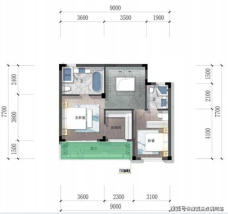 依照样板房设计,2楼两个带内卫、衣帽间的独立套房,中间一个书房。