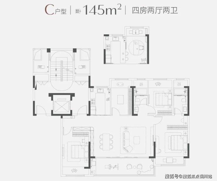 三个户型,对应三种改善需求:145㎡是"终极改善",119㎡是"品质改善",95㎡是"入门改善"。