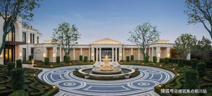 以凡尔赛宫园林为蓝本的东西向仪式花园中轴,串联水景喷泉、礼仪树阵、艺术花廊等,于礼序中彰显皇家庄严威仪。