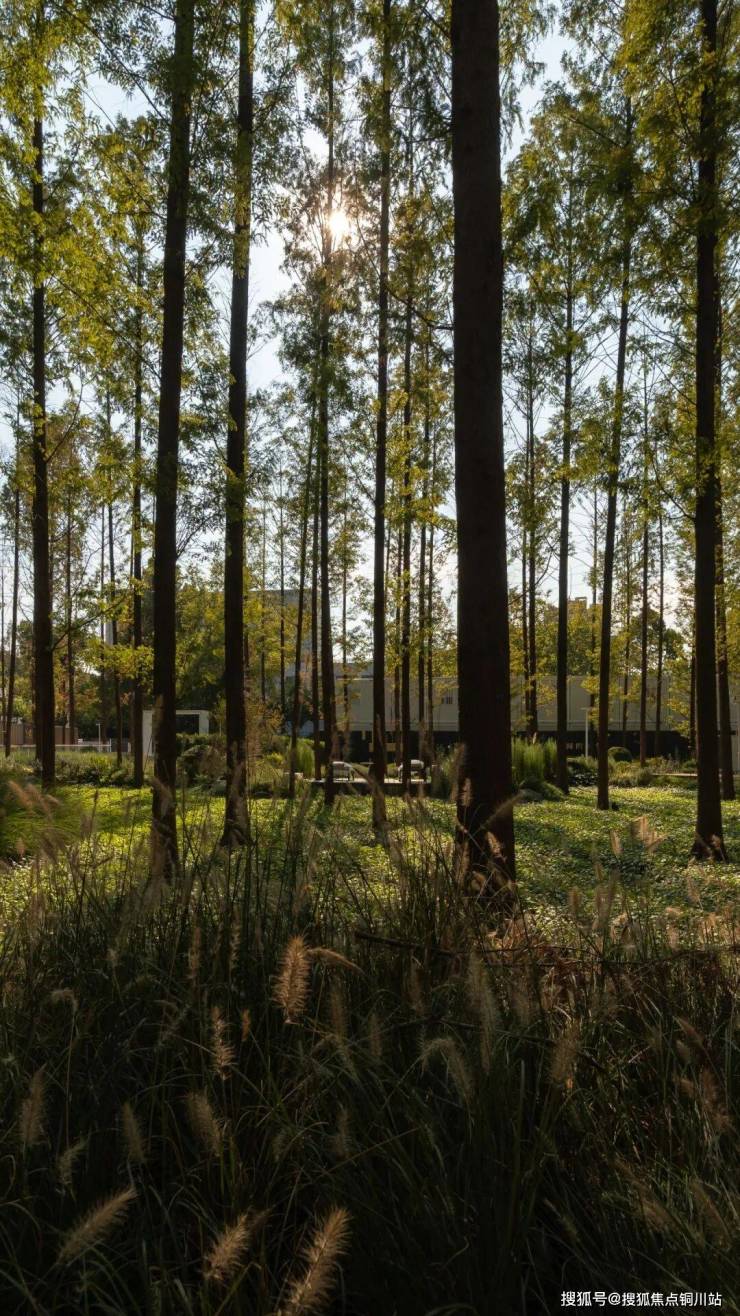 设计团队历经数月的实地勘测,从树与树之间的间隔距离,到每棵树干的生长结构都一一精细考量,以“轻介入”的匠心手法,让步行栈道依水杉林脉络自然延伸,确保原始生态不受破坏。在此基础上,巧妙融入现代休闲设施,使公园既保留自然野趣,又满足市民漫步、健身、休闲、遛娃、露营等多元需求。
