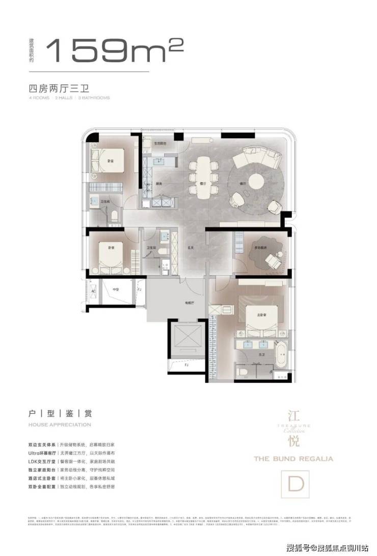 坚守159-244㎡临江大平层,仅186套可售房源,用大户型守住高端居住的纯粹性。
