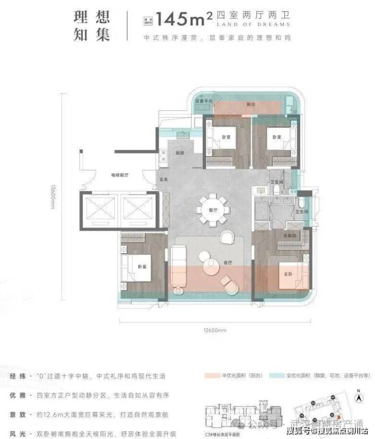 该户型位于2、3号楼端头边户,是通透性极强的产品,更是非常阔绰的大四房,设计同样让人称奇!