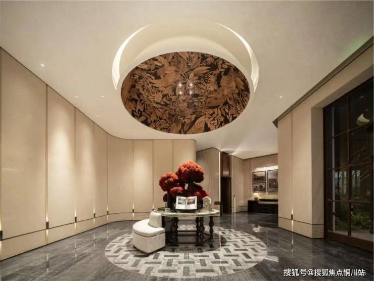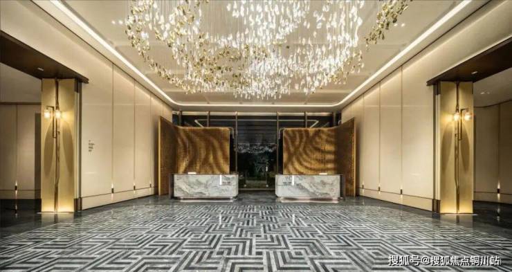 大门入户大堂,复古的地面拼花、门框上的透光云石壁灯、天花板的水晶定制灯阵……将高级感娓娓道来。