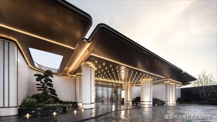 地块无界融入长约400m、宽约20m的公园景廊,主入口,景墙联动大门,展开约100m的超级门庭。