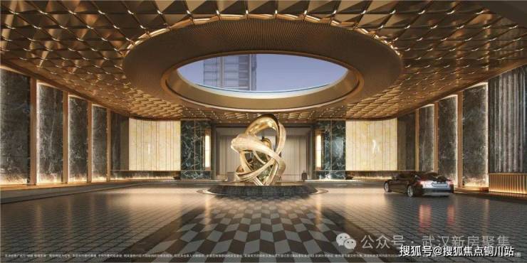 🔹项目打造东、南、西三个社区入口界面,东侧利用沿街景墙连同80m+的山水归家超级界面,入口大面积金属吊顶采取“万字曲水纹”图案,体验城市收藏级归家入口。西侧约60米社区大门为业主归家车行主入口,一线对望湖滨,以伴水归家水境营造奢华游园之旅。南侧大门为别墅洋房区人行入口,取意苏州园林借景手法,营造中轴主景观节点,出入可直接眺望南湖。