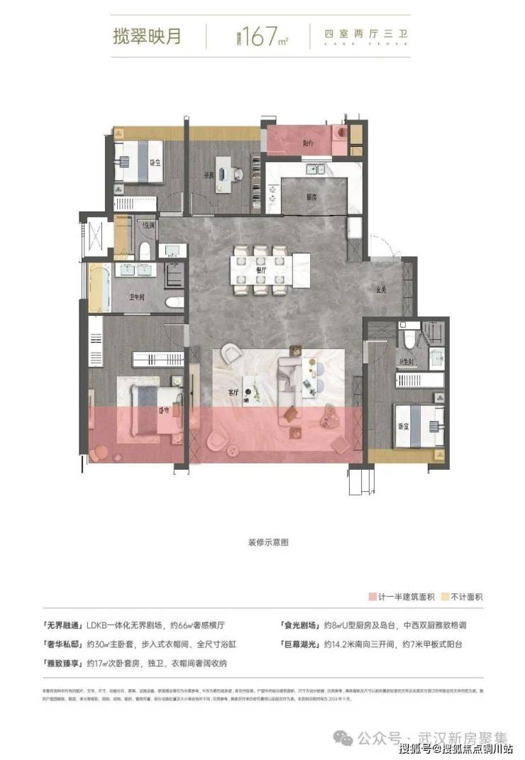 🏠 武汉唯一准四代湖景房,在售户型111-127-142超96%得房率,167平洋房总高8层超103%得房率。