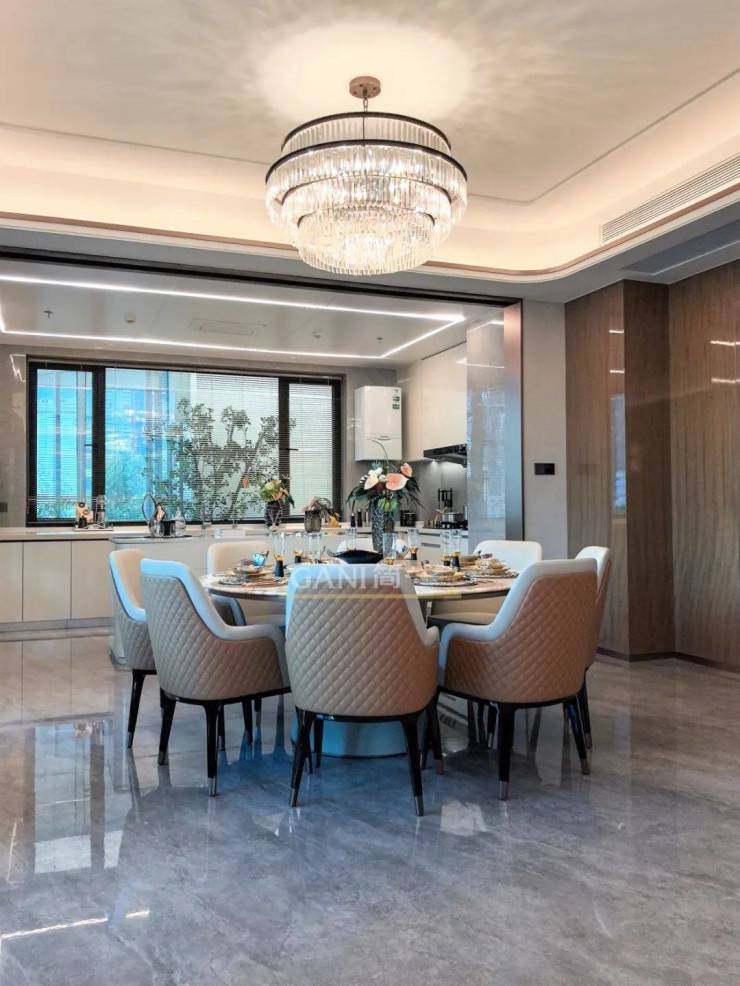客厅以现代奢华的空间风格基调,勾勒出干净利落的轮廓。清晰的线条、克制的几何体块、隐于细节的精致工艺,让空间在简约中升华出高级质感。