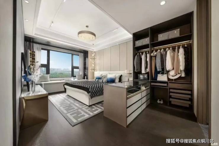 步入主卧,预留步入式衣帽间将休憩空间与带有浴缸的卫生间隔开,丰富日常生活的动线,充分满足高端人群对居住空间的需求,270°揽景飘窗让采光及视野双重延伸。