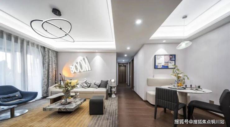 走进样板间,该户型实现了改善盘的舒适感,空间尺度媲美市面120㎡户型。