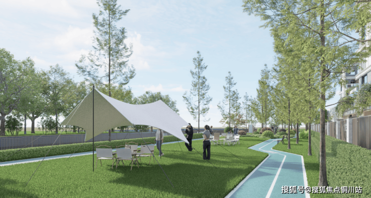 公园内系统规划了300米健身跑道、开阔休闲草坪以及林间康体空间,实现了从“看见风景”到 “融入风景”的升级。未来,业主可在此漫步、露营、健身等,无需远行,便能在家门口拥有一片完整、宁静的自然之境。