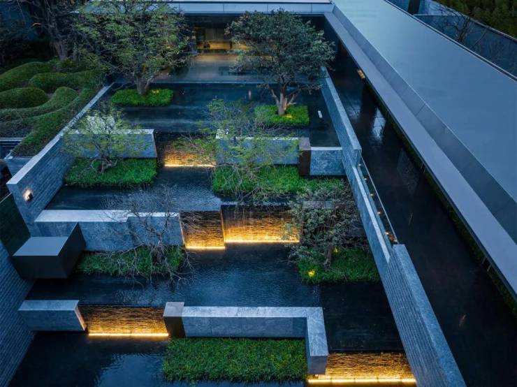 这个是下沉式庭院的跌水景观,层次太棒了,森林秘境的感觉扑面而来!