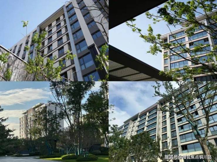 再看紫金桃花源低密电梯洋房的建筑立面,采用石材+金属一体板+晶彩石漆作为建筑外立面,历久弥新。