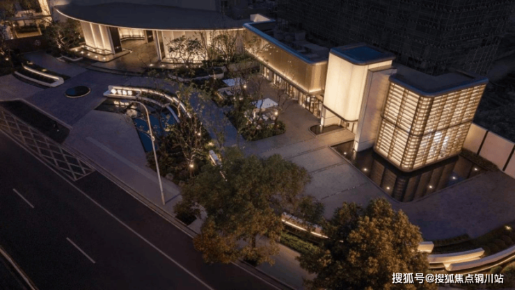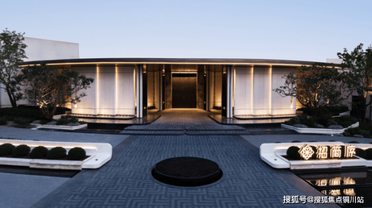 “招商序”以45°斜轴串联空间,引入序系花园商业,打造超过120米的超级城市展示面。约53米弧形巨幅石材景墙,以贝金米黄石材铺贴,结合定制灯光系统,昼夜皆可呈现艺术馆级的视觉效果。这是一处不仅服务于业主,更献给城市的建筑艺术名片。