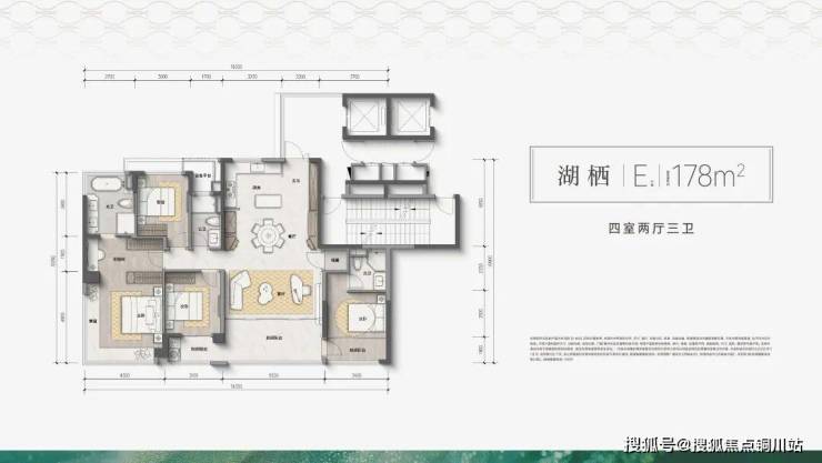 湖山无界,所以月映金沙在沿湖头排建面约178㎡的户型设计上,采用了大面宽、宽阳台、转角无柱的270°景观设计,而且是公建化立面,带来巨幕观景视野。