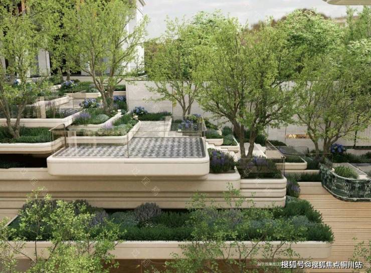 山是四季变换的,四时山色藏烟雨,与之对应的月映金沙的景观也是步移景异。月映金沙重构了生息社区的超级转角,让社区与街道之间的空间变成都市的温暖驿站;也重构了地下车库,让阳光、微风和自然引入地面车库层,车库也成了会呼吸的空间;还以抬板空间重构了配套,地下空间和架空层不再是“平铺直叙”,而是用向上排列的方式规划了天光篮球馆、恒温泳池、全景健身房、Alice森之谷、下午茶空间等。
