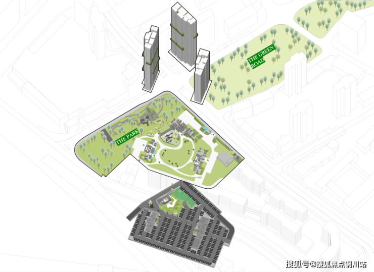 高层建筑象征山丘的天际线,景观设计则致力于将人工化的城市结构与自然化的山丘意境融为一体。