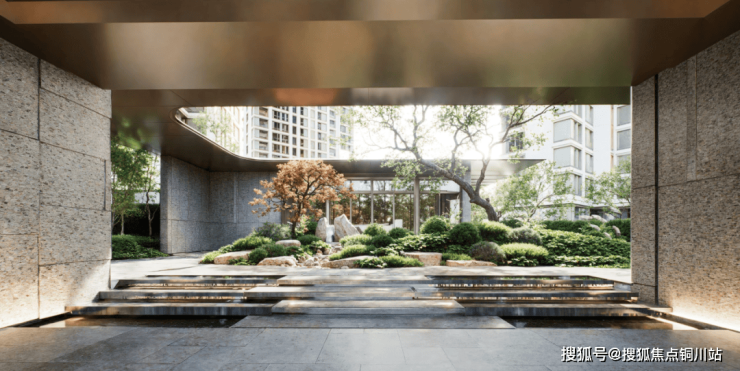 无论从主入口人行归家,还是由地下光厅车行归家,居者所见皆是一片乔木绿荫、丰富地被与自然景石交织的森系画境——不是观赏自然,而是置身自然。