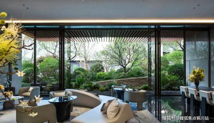 地形高差、绿篱水景与通透玻璃等「柔性边界」替代了高耸的围墙与生硬的切割,柔和了生活与城市的界限,让每一次归家都成为一场从喧嚣到宁静的自然穿越之旅。