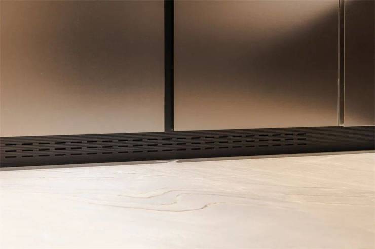 产品细节:透气孔款踢脚板,散热透气;免拉手线条灯,美观实用,整体性强。