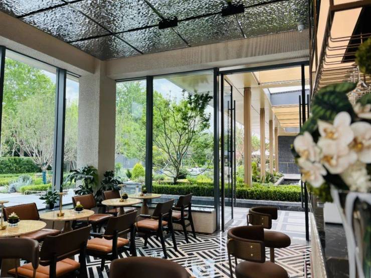 外部前庭广场借助水景、多层植物组团,消融了生活与城市、繁华与自然的边界,营造了让人向往的休闲生活。