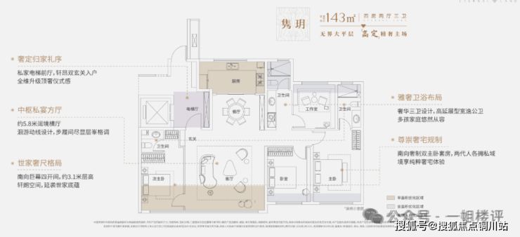 建面约143平的大四房则是大批改善置业心心念念的抢手货,南向四开间,双套房设计,让改善户型直接豪宅化!